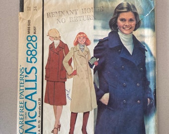 Vintage Mccalls 5828 Pea Coat Skirt Pattern C C Etsy